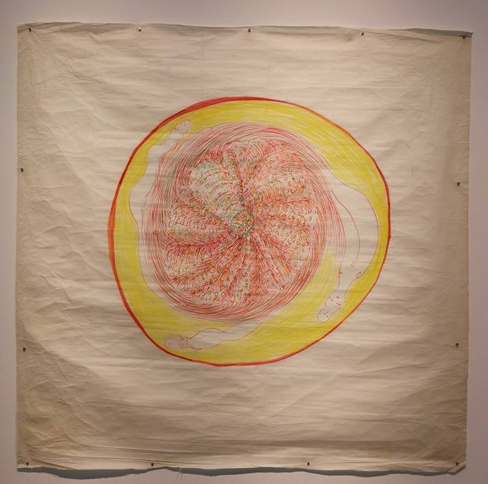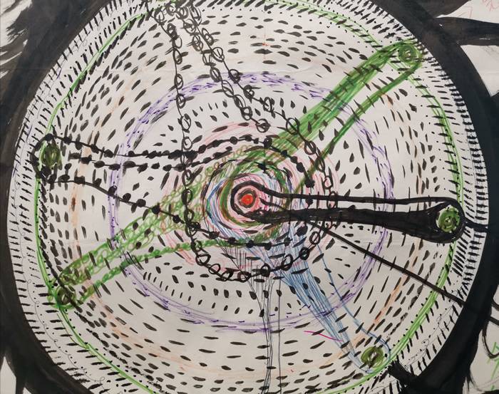 她创作了这件作品,在巨大的圆形周围游离着灵魂。