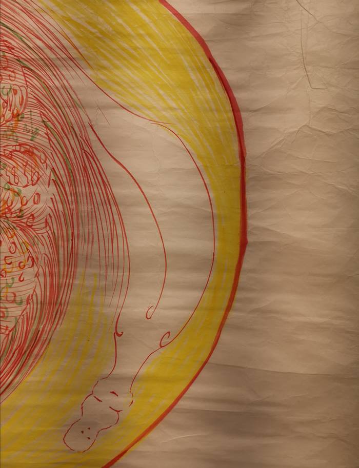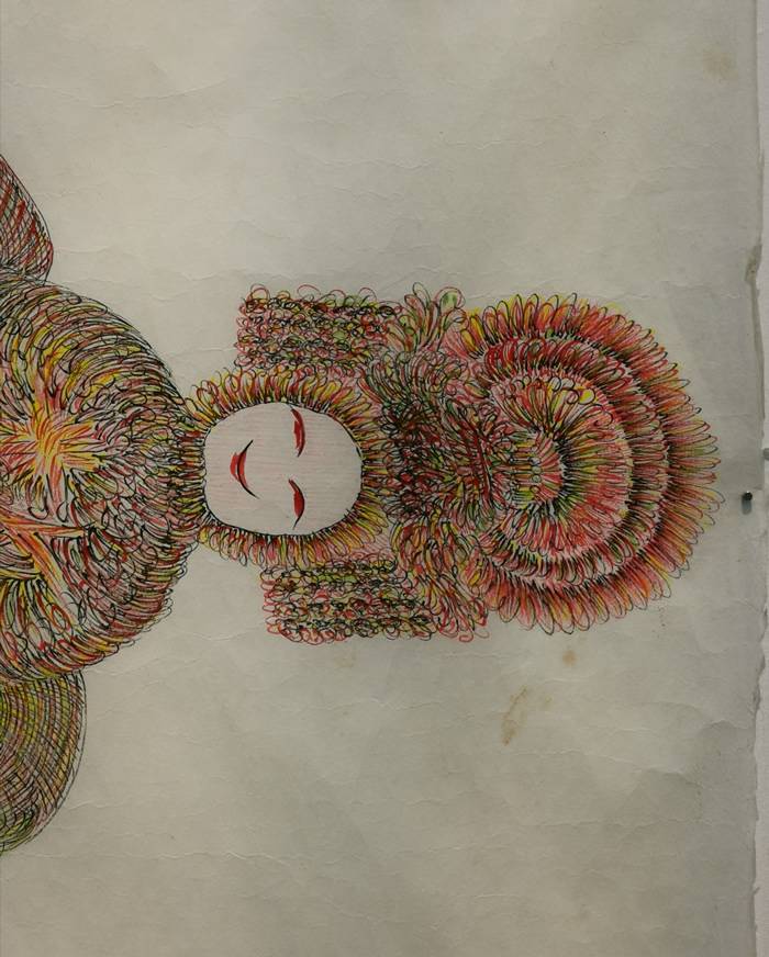 她的画通常都是从中间画起,逐渐向外扩张着。