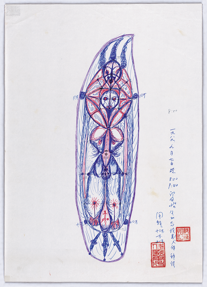 《人体神经图解》 1989年 彩墨、晒图纸
