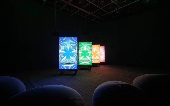 吴其育的创作主要以动态影像为主。《发光半导体未来》——艺术家想像自然光源(太阳)已完全消失,而我们生存的星系,仅有的LED人造光源成为人类赖以生存的世界。现在被人们大量使用的LED,除了用来散发光源、再现影像,同时也是讯息与讯号的主要终端界面──LED取代了自然界的光,成为形塑记忆和意识的来源。艺术家以此想像,反思当今人类历史及文明发展。