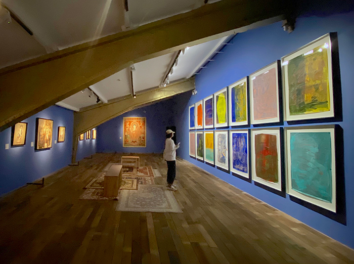 展览现场(展厅的主题色均取自于新疆壁画中的常用色彩)